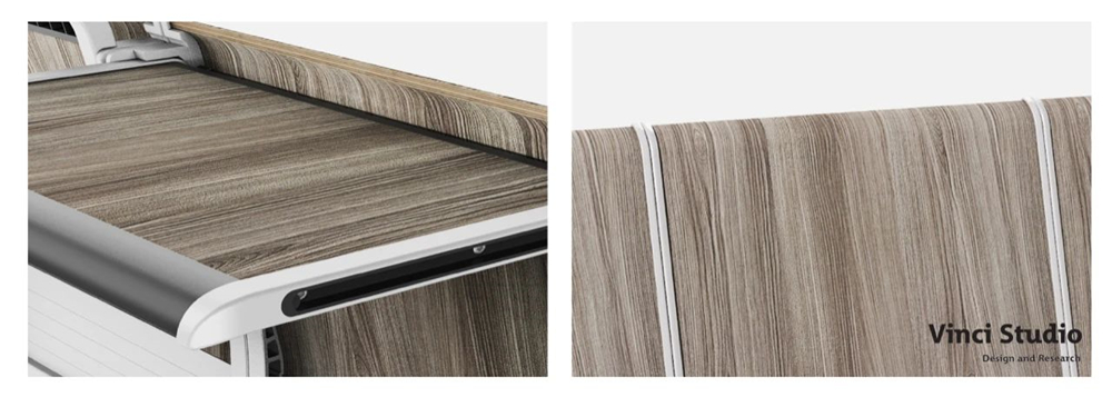 Vinci Studio提出以模塊化系統(tǒng)化的產品方案,來滿足不同室內大小、不同使用場景的需求。更加簡約的設計本身占地面積小,可自動回位的旋轉椅座讓起身和行走更便捷。寫字板高度可根據(jù)是階梯教室還是平底教室來調節(jié),從而一直保持最舒適的書寫高度,培養(yǎng)學生正確的坐姿習慣。
