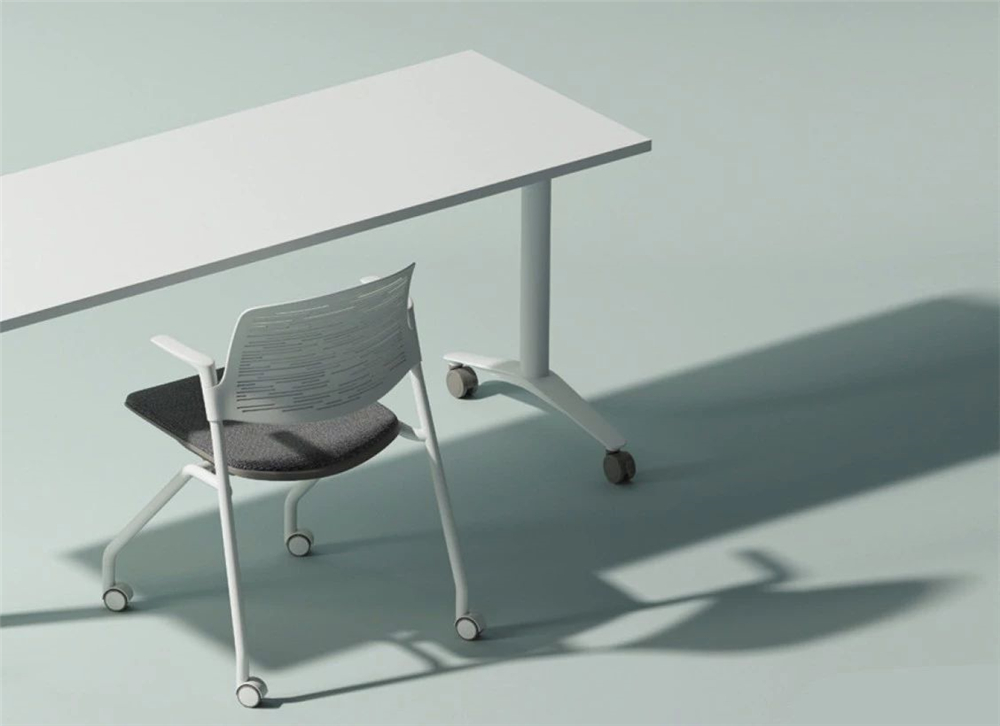 桌面可以一鍵翻折,便于折疊,在小群體的使用情境下,可以提供更大的空間,實現(xiàn)最大化的空間利用。同時FLEXA座椅也以滿足合理的利用空間需求——可折疊,可堆疊,實現(xiàn)辦公空間的座椅儲備功能,同時又不占用過多空間。