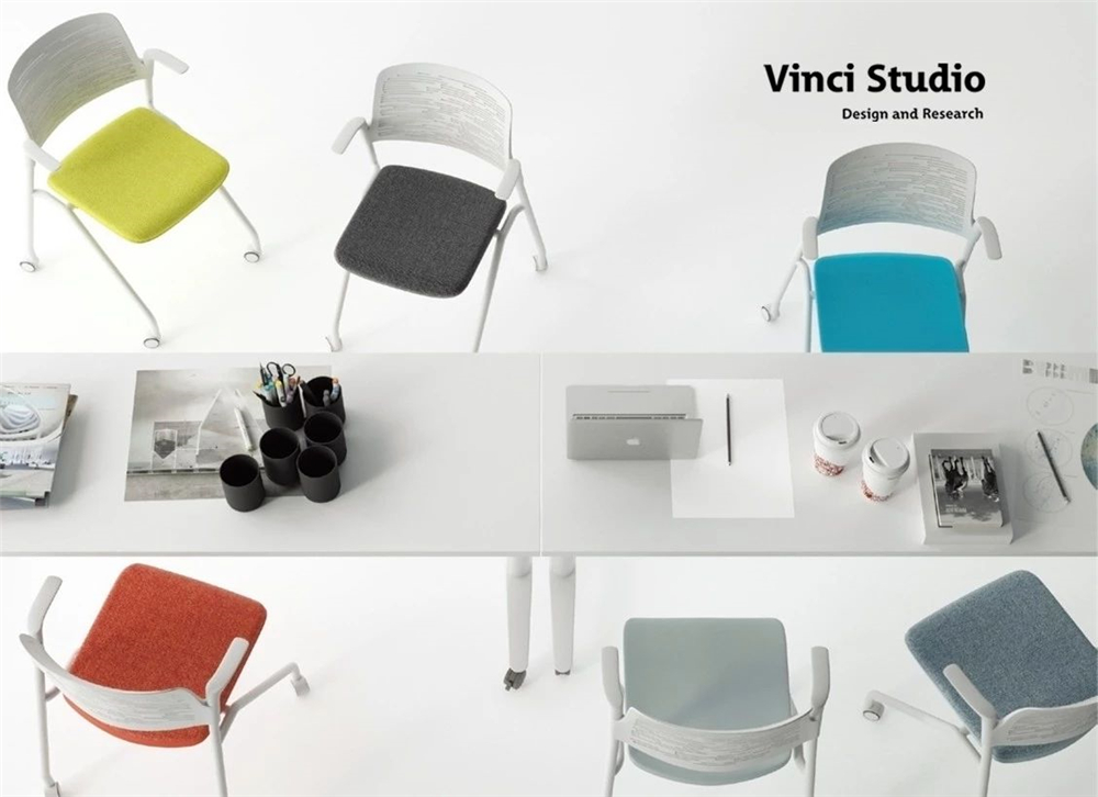 因此Vinci Studio以人體工程學(xué)出發(fā),通過研究總結(jié)會議,學(xué)習,工作等各種情境下的目標用戶的坐姿形態(tài),全面的分析用戶的座椅需求。并根據(jù)調(diào)研結(jié)果設(shè)計出以弧形為主要造型的座板和靠背,以貼合用戶身體來滿足他們的久坐需求,從而降低了外部環(huán)境引起的不適感。同時網(wǎng)狀的鏤空設(shè)計,更是為用戶提供舒適透氣的靠背體驗。