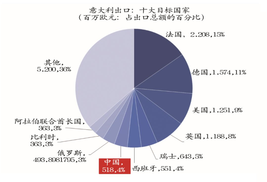 2017年,中國成為意大利家具和照明系統(tǒng)的第7大目標(biāo)市場,也是意大利在歐盟(將瑞士列為歐盟國家)以外的第二大市場,較2016年升高一個排名,超過俄國(圖2)。